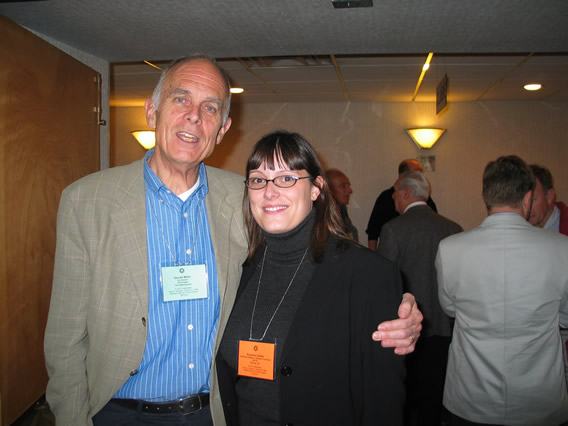 Don Miller and Suzanne Collins phonate in the foyer between sessions. Harm Schutte (left), Johan Sundberg, Ingo Titze and Sten Ternström laugh it up. Joe Wolfe (left) and Sten Ternström talk shop.