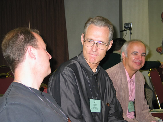Left to right, John Nix, Ron Scherer and Fari Alipour talk during a break