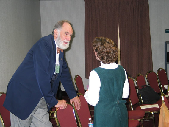 Harm Schutte (left), Johan Sundberg and Ingo Titze visit together during a break in the action. Ofer Amir smiles for the camera. "You really need to wear bowties, Ingo...they'll help you look taller!" - Ingo Titze and Johan Sundberg get the giggles in a light moment between sessions.