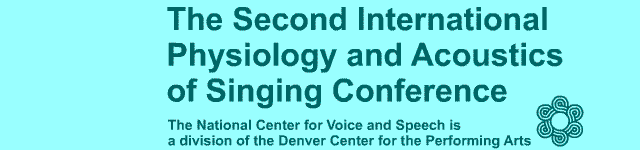 | The 2nd International Conference on the Physiology and Acoustics of Singing brought together performers, voice educators, voice scientists, medical doctors and behavioral therapy specialists from the United States, Australia, Brazil, Canada, England, France, Israel, the Netherlands, Norway and Sweden in a unique format of lectures, demonstrations and performances. It was held in Denver, Colorado, U.S.A. October 7th - 9th, 2004. Explore the Presentation Archive to experience the wealth of information presented at the conference, in a rich, multi-media format. The Panel Discussions link provides you with the text dialogue and full audio of the panel discussions that took place during the conference. View the E-Scrapbook to see pictures taken during the conference. The Attendee Survey provides a summary of the success of the conference. Thanks to all the presenters who generously provided electronic versions of their presentations so they could be paired with the audio narration to help provide a complete resource of presentation content. Listen to the songs sung