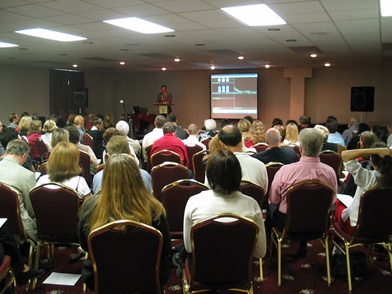 room was packed for this presentation on voice acoustics.