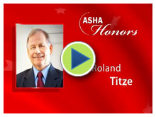 As an expert in Voice and Speech, Dr. Titze is being presented with this award due to his tireless efforts in voice habilitation, public education, and is considered one of the world's leading voice scientists. The Honors of the Association recognizes members for their distinguished contributions to the discipline of communication sciences and disorders and is the highest honor the Association bestows. [ expand | collapse ]