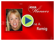 The American Speech---Language---Hearing Association (ASHA) bestowed its highest honors (Honors of the Association) to Dr. Lorraine O. Ramig. The award was presented in Philadelphia on November 19, 2010.
