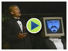 Operatic tenor sounds produced by a robot with pure mathematics and physics in 1992. No recording or sounds of Pavarotti were used. Only the general anatomy of a tenor voice was used as input.